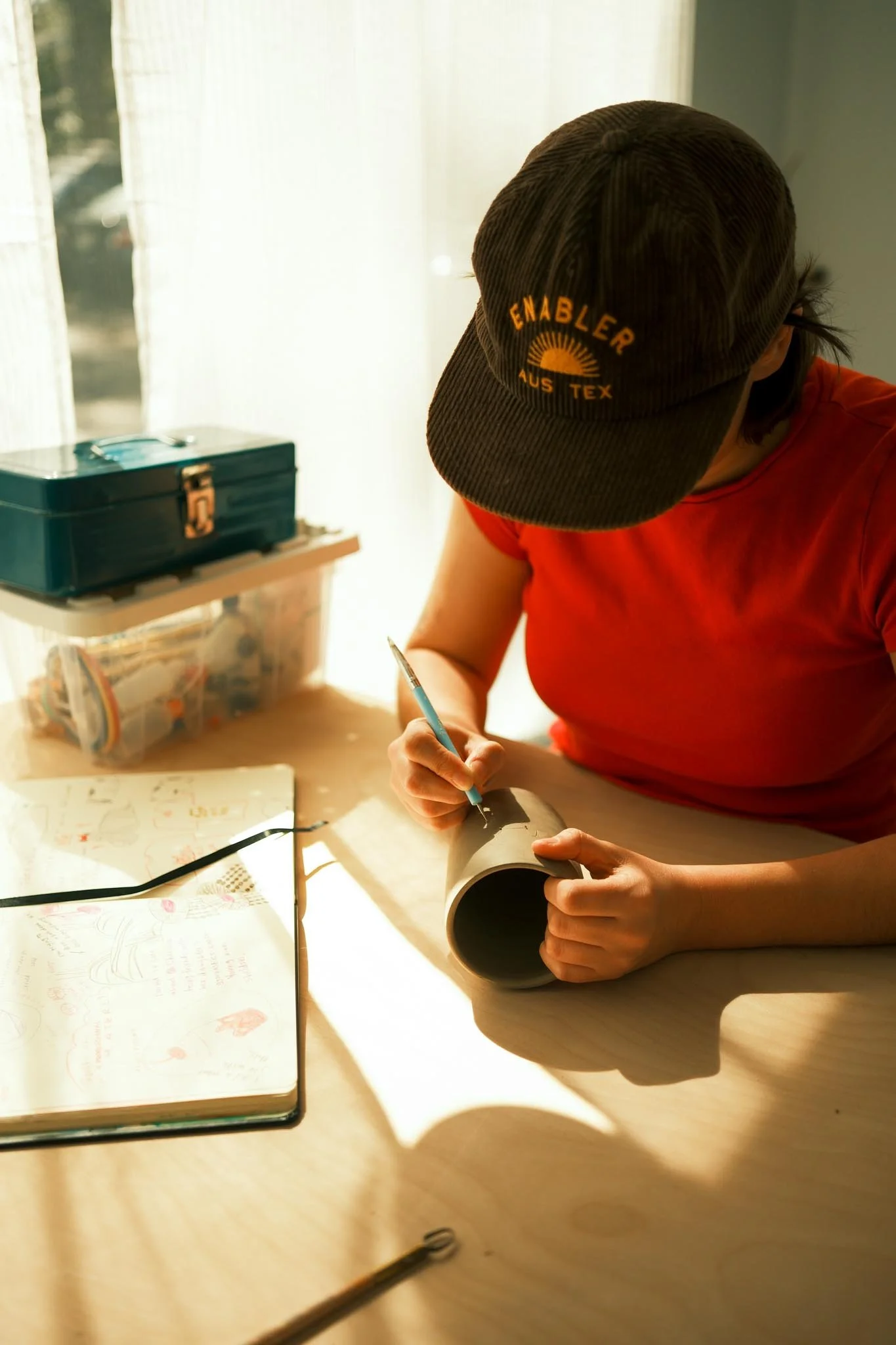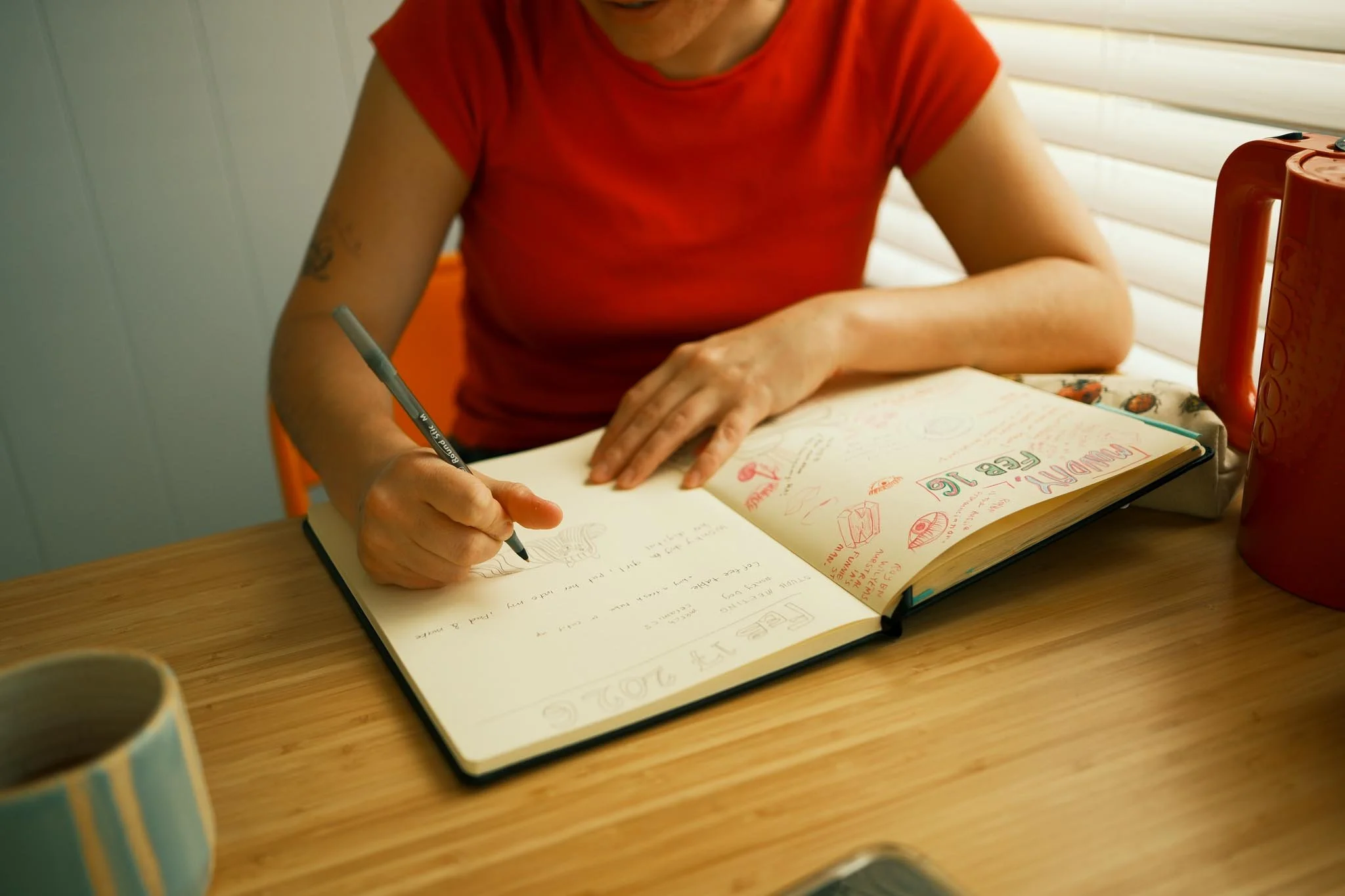 we had a little lunch break meeting to catch up and then quickly dove into making this lil’ whim idea into something we could share with the world. it was so fun to gab about the idea, have sarah show me her sketches and then be like ‘ i’ve got a fresh tumbler we should just make one! ' in just a couple of hours we’d gone from eating breakfast sammies to designing, craving, and completing the cup!